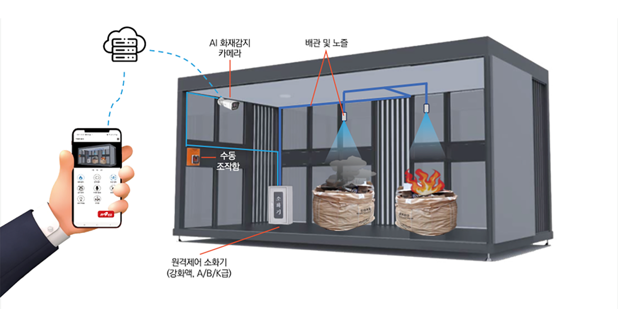 분리수거장 화재 감지부터 소방서 실시간 영상 제출, 소화장치 원격 작동까지 한번에!